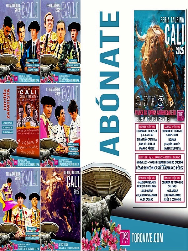 La primera corrida de toros el 6 de enero contará con la participación de Román, David Galván y Juan Hernández, quienes lidiarán astados de la ganadería Dosgutiérrez, famosa por la calidad y bravura de sus toros. El 7 de enero, en la segunda corrida, se presentarán Antonio Ferrera, Emilio de Justo y el colombiano Juan de Castilla frente a los ejemplares de Santa Bárbara, una ganadería emblemática en Colombia, que siempre ofrece toros de gran estampa y fuerza.