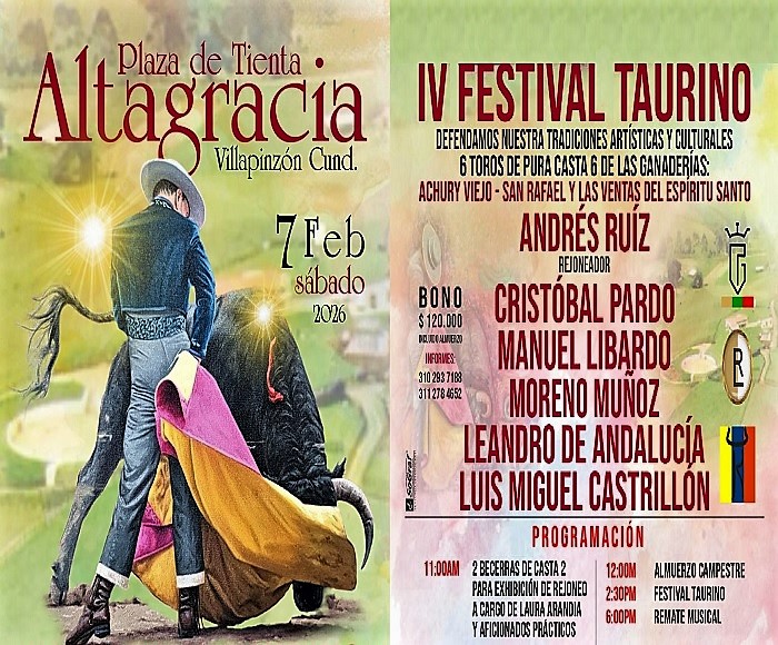 Con la confirmación del festejo y el ajuste responsable del cartel, Villapinzón ratifica su lugar como bastión taurino en Cundinamarca. Aquí la tauromaquia se defiende con argumentos culturales, con respeto al toro bravo y con la convicción de que las tradiciones no se heredan pasivamente: se sostienen con decisión, se actualizan con inteligencia y se viven con orgullo. El 7 de febrero, en Altagracia, la cita está hecha y la afición responde.