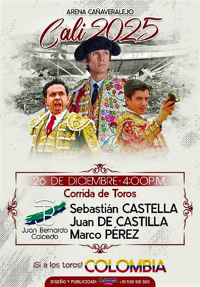 La 68ª Feria Taurina de Cali levanta hoy el telón con un cartel de enorme interés y diversidad: los toros de Juan Bernardo Caicedo para el francés Sebastián Castella, Juan de Castilla y el joven salmantino Marco Pérez, en una tarde que promete emoción, técnica y verdad taurina.