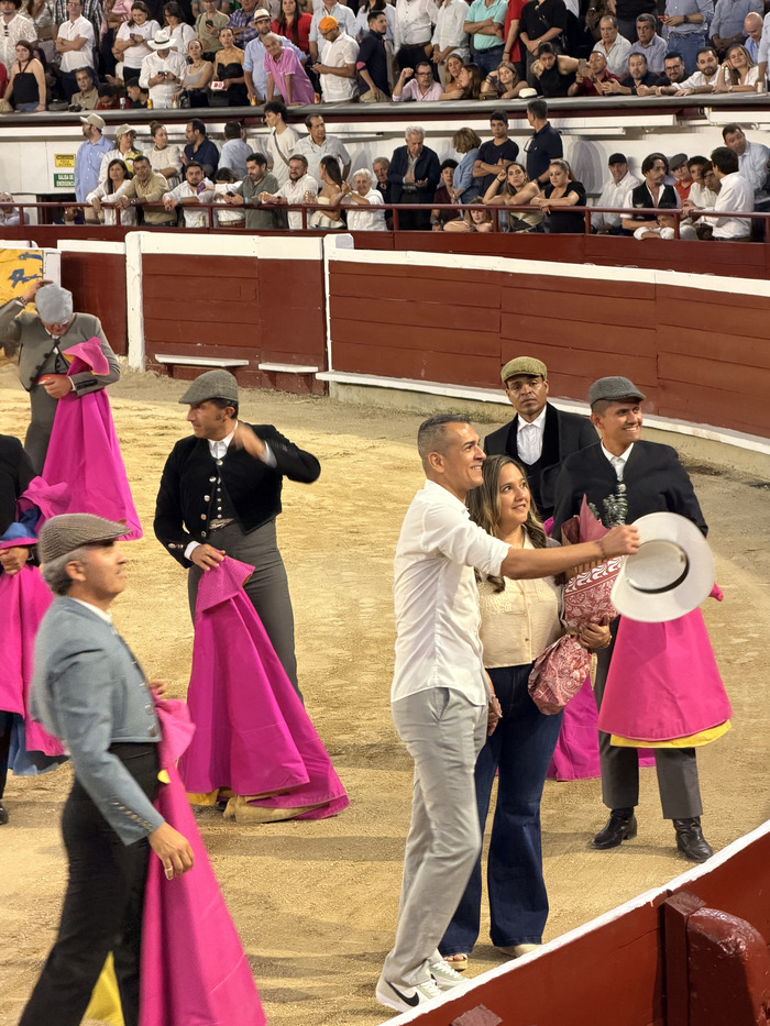 Cali - Colombia. En las fotografías de la noche donde César Rincón dejó una enorme lección de maestría torera, captadas por el lente preciso de Gerardo Márquez Garzón, no hay instante menor: todo es temple, colocación y verdad. El diestro colombiano aparece asentado, con el peso repartido, cargando la suerte con naturalidad antigua, llevando al toro cosido a la muleta en tandas profundas y mandonas. La luz nocturna recorta la figura y subraya la quietud, esa quietud que no es inmovilidad, sino dominio, mientras el cite se hace con los vuelos bajos y la embestida se gobierna con muñeca firme y compás abierto. Cada pase es un tratado de distancia y tiempos; cada remate, una rúbrica de torero hecho y derecho.
