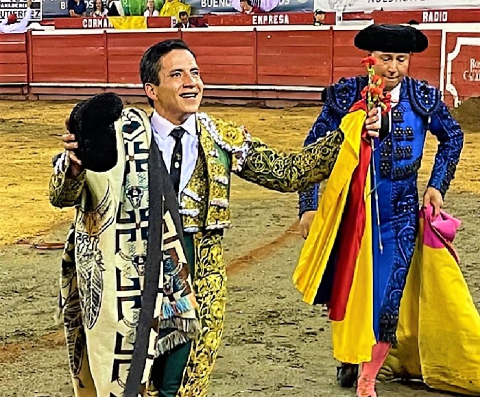 El paseíllo fue muy emotivo. Uno de los monosabios recibió un homenaje por parte de Cormanizales, y en los tendidos se alzaron muchas pancartas en favor de la fiesta brava, entre ellas algunas con gritos de “¡Fuera Petro!”. Antes del primer toro, una pancarta anunciaba el regreso de César Rincón a torear en Manizales, rumor que ya circulaba desde la mañana, cuando el maestro salió por octava vez por la Puerta Grande de Las Ventas.