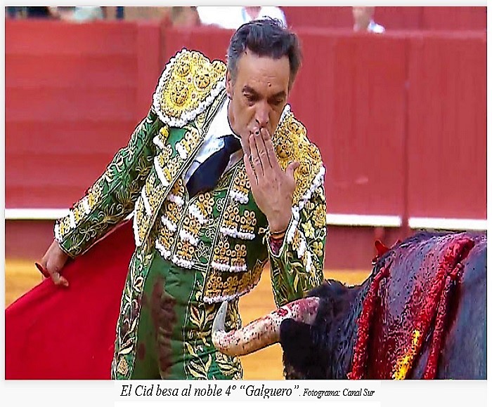 El Cid, llegó con su cabeza ceniza, su rostro surcado y su gesto mayor, en plan de última cena; de no se si mañana estaré con vosotros. Tuvo una decorosa que no triunfal tarde. A la vista salta, que ya con sus cincuenta y dos años y veintiséis de alternativa, no está para heroísmos ni arrebatos suicidas. Está para “disfrutar”, cuando se puede, claro. Sus dos de hoy se lo permitieron y la gente lo hizo con él. Jóvenes y viejos. La emoción torera es altamente contagiosa.