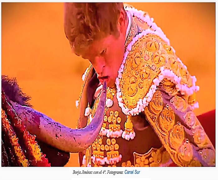Y Borja Jiménez, hay que hablar de Borja. Cómo estuvo, con el segundo y más con el cuarto. ¡Uy! Qué torero. Qué tronío, que comprensión y sensibilidad, qué poder. Cómo dominó sus exigentes toros, cómo puso la plaza, cómo mereció la música, cómo se prodigó al natural con “Bolsilillo”. Hasta 41 repartidos en siete tandas con sus respectivos torerísimos remates le conté. Alguno más, alguno menos, no importa. Porque la calidad, la pertinencia lidiadora y su riqueza expresiva estaba por encima de la cantidad. Ovaciones, pasodoble, runrún y silencio profundo cuando se lanzó a volapié. Todos, presentes y televidentes íbamos tras él. Por dos veces dimos en duro. No estoqueó, mató con la cruceta. El bravo, noble y exigente victorino no lo merecía. Ahí, precisamente ahí, se consumó el sinsabor que dejó la tarde en lo que pudo haber sido y no fue.